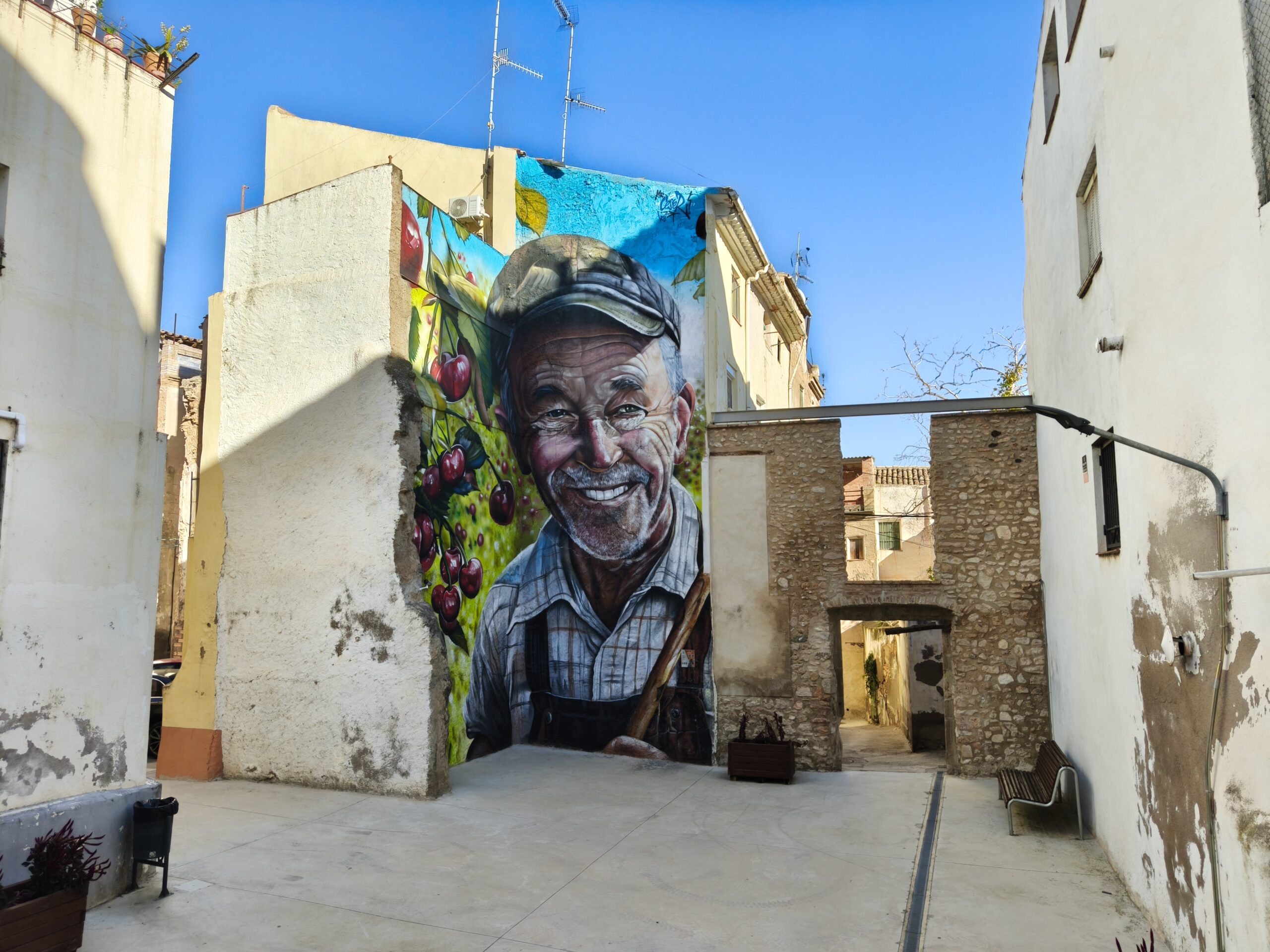 En dan is het tijd om even terug te rijden, naar Móra d’Ebre, hier stopten we vorig jaar ook al eens, maar we moeten de was stilaan doen. We vinden een prima wassalon (de prijs was standaard, en alles was proper en droog, wat wil je nog meer) en gaan even door het stadje wandelen terwijl we wachten. We vinden alweer een prachtige muurschildering.