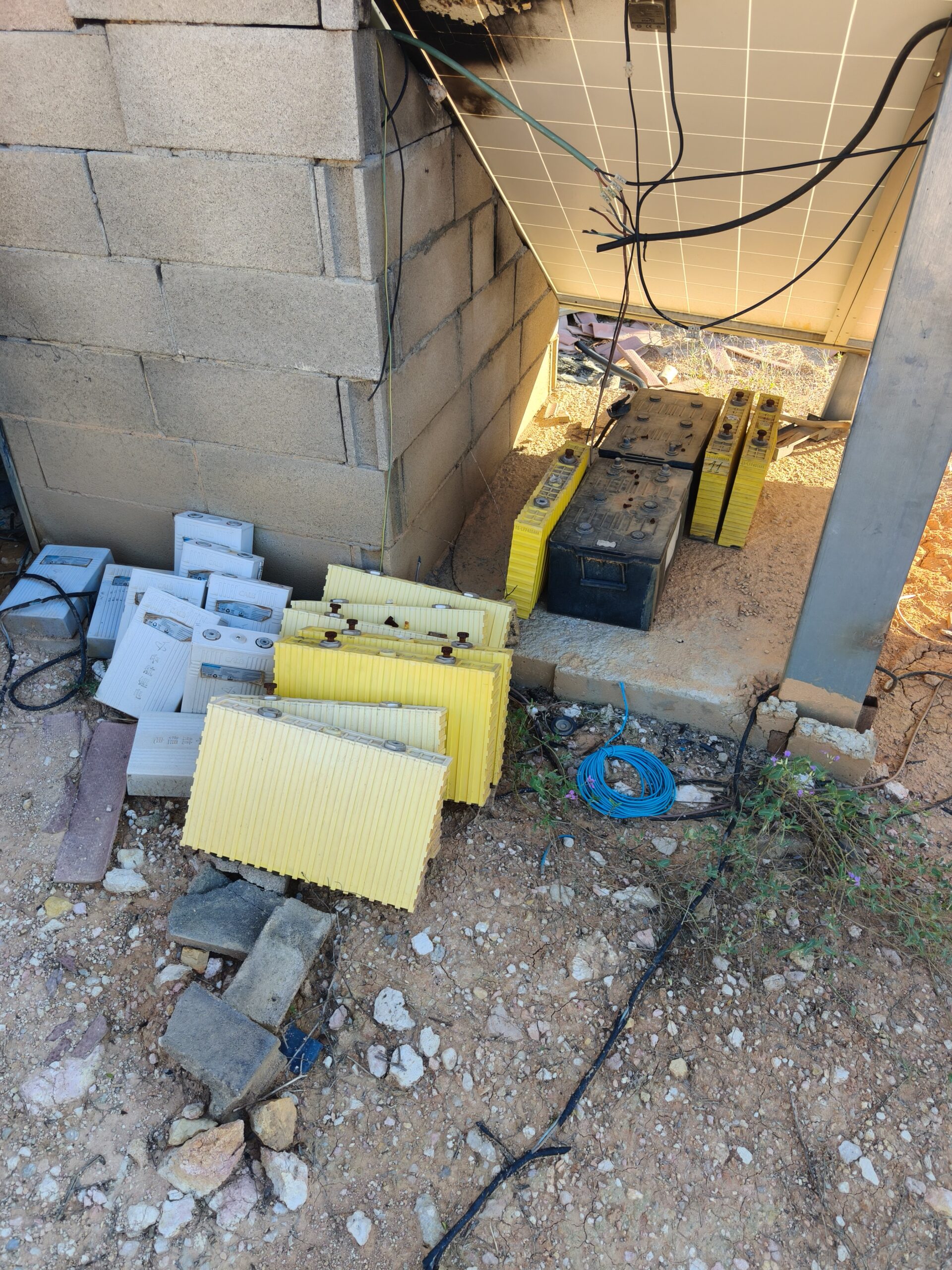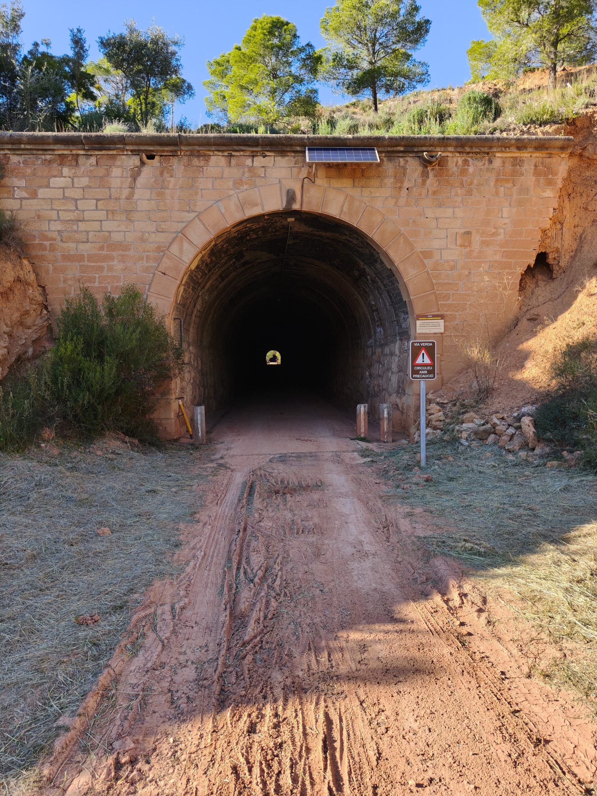 En nu is het echt tijd voor de Via Verde. Samen met Wouter parkeren we ons aan het station van Xerta, in dit dorp hebben we het begin van het jaar ook gestaan en zijn we zelfs heerlijk gaan eten in een lokaal barretje. Eigenlijk wilden we wat verderop in de bergen gaan staan, maar daar is de mobiele ontvangst vrijwel onbestaande, en we moeten natuurlijk ook nog werken. Terwijl Wouter aan een rit begonnen is met zijn MTB, klappen wij de laptops open. Tot we plots bericht krijgen van Wouter, heeft ie daar toch wel ergens Wi-Fi gevonden zekers, aan het oude station van Pinell de Brai is een (gesloten) restaurant, met Wi-Fi, en het wachtwoord hangt op de deur. Wij dus rap naar daar, met de auto (of bus) is maar een kwartiertje rijden. We zetten ons strategisch in de buurt van de Wi-Fi. Wel vreemd dat ze hier internet hebben, al snel blijkt het Starlink te zijn, en draait heel het restaurant op zonnepanelen en een (zeer amateuristisch gemonteerde) lithium batterij. Een ware schande, er liggen her en der gebruikte en kapotte lood- en lithiumbatterijen. Op deze manier zal het zeker niet de laatste set zijn… Ook de lege zakken houtskool slingeren her en der rond het restaurant. Het ziet er best symptathiek uit, maar het gebrek aan respect voor de mooie natuur doet toch de wenkbrauwen fronsen.