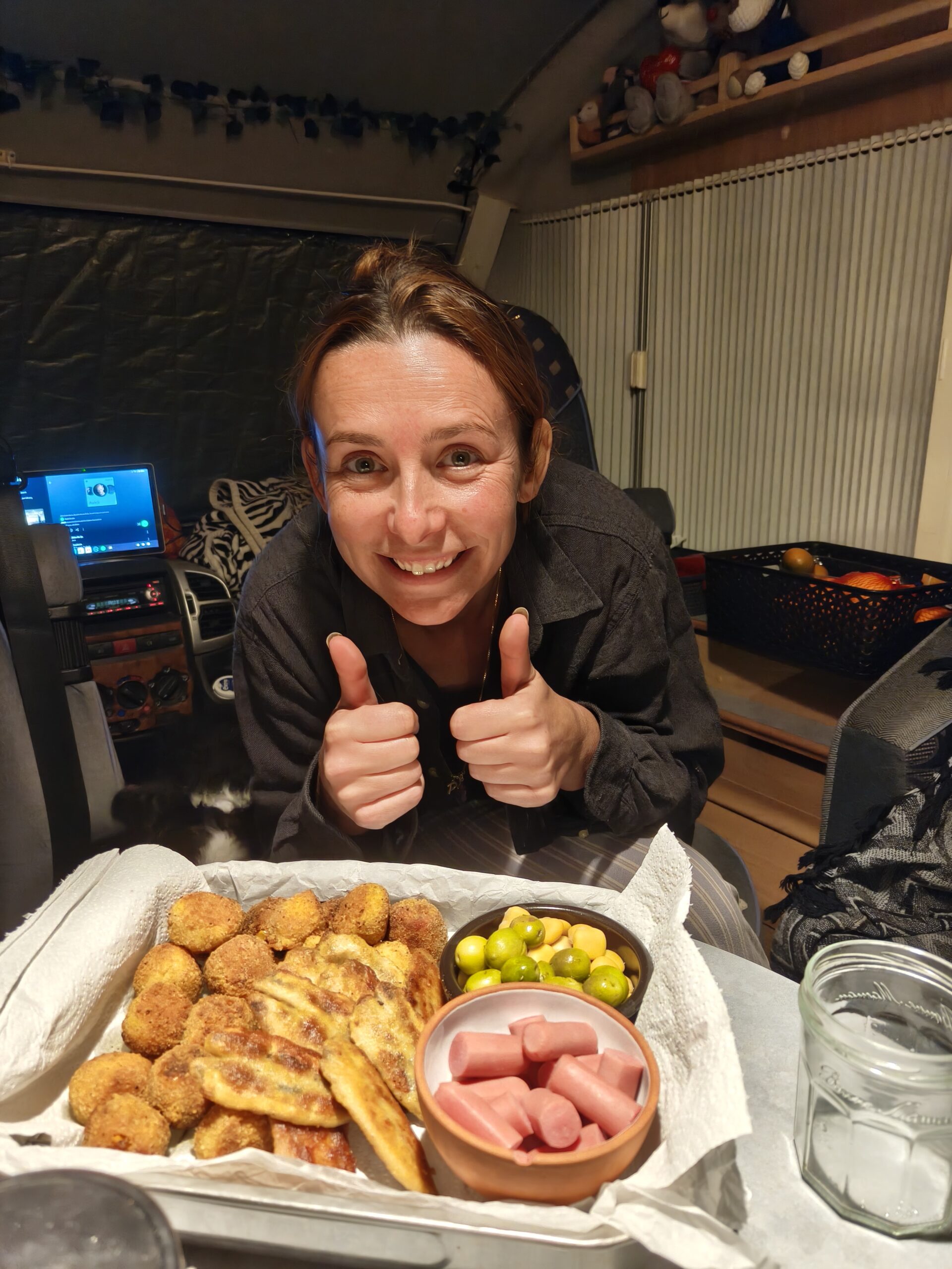 ’s Avonds maakt Nikki croquettas, gefrituurde ansjovis en andere lekker hapjes die we samen met Wouter verorberen.