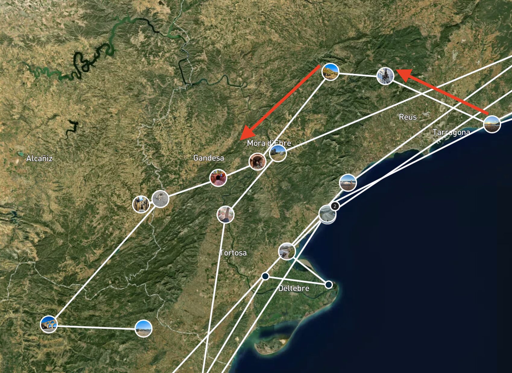 Vooraleer we effectief aan de Via Verde zelf komen, rijden we eerst een berg op, het is een stevige klim met talloze haarspeldbochten. We rijden richting de restanten van een oud dorpje ‘La Mussara’. Op de piek van de berg, ongeveer 1000 meter hoger, staat een groot antennepark waar je goed zicht hebt over de ganse omgeving, echt spectaculair.