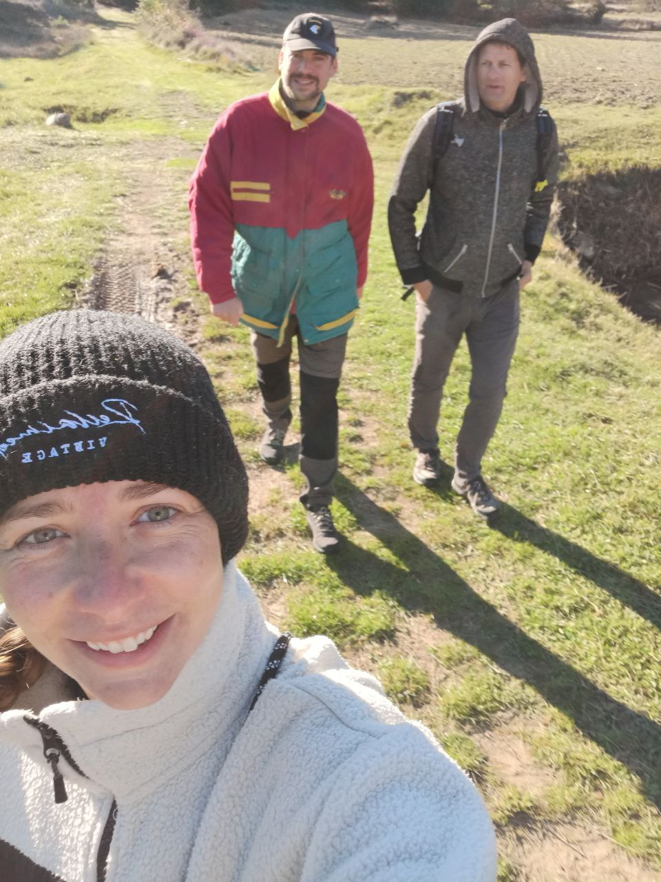 Waarom we hier staan: Er is een wandeling naar een gorge of kloof. Na enkele meetings in de ochtend gaan we samen met Wouter rond halfelf op pad. Het is best koud! We hebben onze winterjassen aangedaan, ’t is te zeggen, ik heb mijn vintage Puma jas uit de jaren ’90 aan – ’toen mokten ze nog kwalitaajt’.