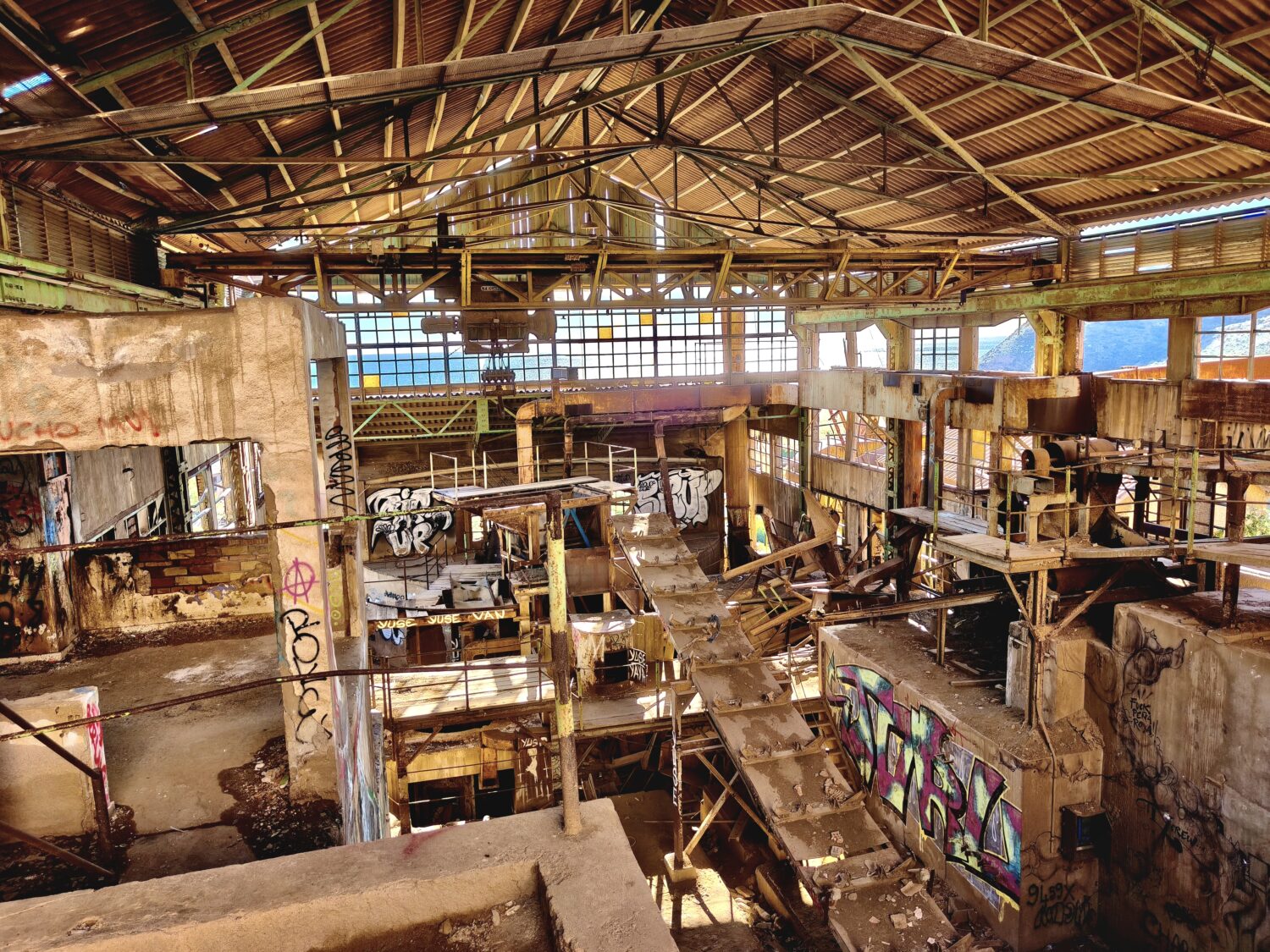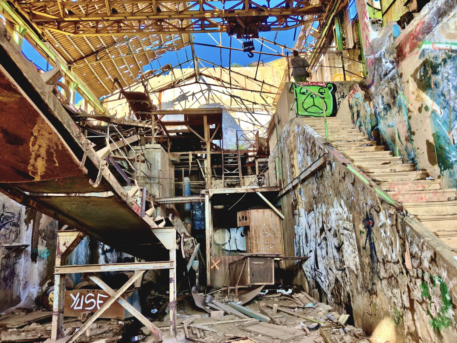 Geen Spanje voor ons zonder verroeste treintjes en vervallen gebouwen. Zoals ik al aanhaalde in de intro, heeft Portmán een mijnverleden. Gezien Spanjaarden niet zo van opruimen houden, is er nog heel wat te zien. Allereerst een oude mijntrein – die is zelfs helemaal gerestaureerd. De tunnel waar ze doorreden, is helaas vakkundig (lees: niet op zijn Spaans met een bordje ‘cuidado, cabron!’) afgesloten. Daarna was een oud mijngebouw (vrij vertaald een ‘wasinstallatie’) die niet zo vakkundig afgesloten was… Het is volgens mij deze installatie die ervoor gezorgd heeft dat de visserhaven plots op 500 meter van de zee lag, door al het puin dat door de jaren heen in de baai geloosd is. Het mijnbedrijf is nadien verplicht geweest een nieuwe vissershaven te bouwen verderop. Of er dan nog veel gezonde vis rondzwom is een andere vraag…