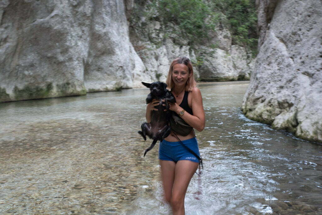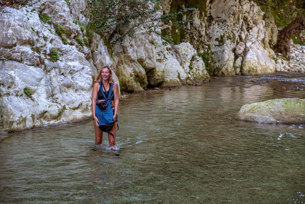 After more than two hours of wading through the water, we arrived at a bridge. Where we could climb out of the gorge and hike back on a normal hiking trail. After this fun and active intermezzo it was time to pick ‘our’ Amber back from the boat. This had meanwhile been sent back by airmail and landed on Corfu. Kai played courier service and picked her up.