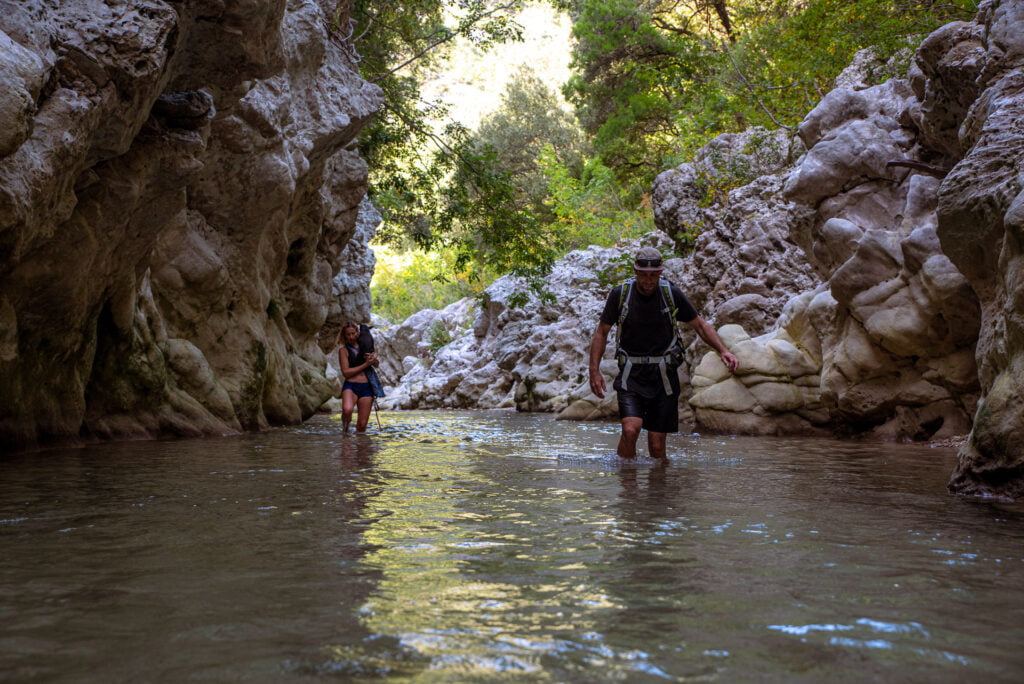 In Ammoudia we met Kortis, a 63-year-old fisherman who was convinced that he spoke good English. Unfortunately, understanding him was a real effort. In a previous life he had been an engineer in the engine room aboard a freighter or tanker and had seen the world (and learned his English…). We became acquainted when we went to test a local restaurant in Ammoudia and the Ouzo started to flow a little too richly. The next day Kortis came to visit us again on the beach and gave us a fish he had just caught. We got talking and that’s how we came up with the idea to go to Glyki, not far from his hometown. There was a gorge with water springs coming out of the mountain… Our interest was already piqued and we went a bit inland.